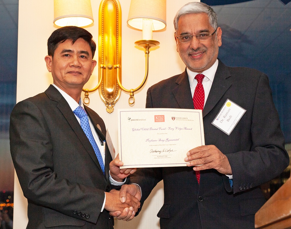 Photo: Professor Rossamith (left) receiving his award from Professor Raman Bedi, Chair, GCDFund.